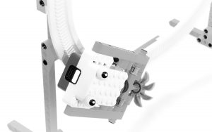 今日の実験。左右の手首の高さで左右のモータースピードをコントロール。シンプルだけど楽しい。